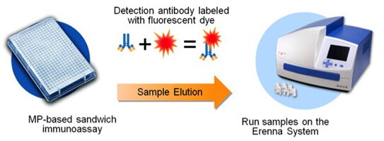 Singulex has developed the Erenna Immunoassay System, which leads the next generation of molecular diagnostic technologies capable of quantifying biomarkers at the sub-picogram level. The Erenna technology utilizes paramagnetic microparticles (MPs) as the solid phase for capture and detection of analyte from a complex biological sample, providing enhanced specificity, sensitivity and precision by 1-3 logs over existing plate-based methods.